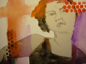 Pop-Up, Kathy Collins, 10×10, watercolor & collage on board, 2014