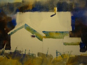 Kathy Collins, House at Samish, watercolor on board, 10×10, 2015